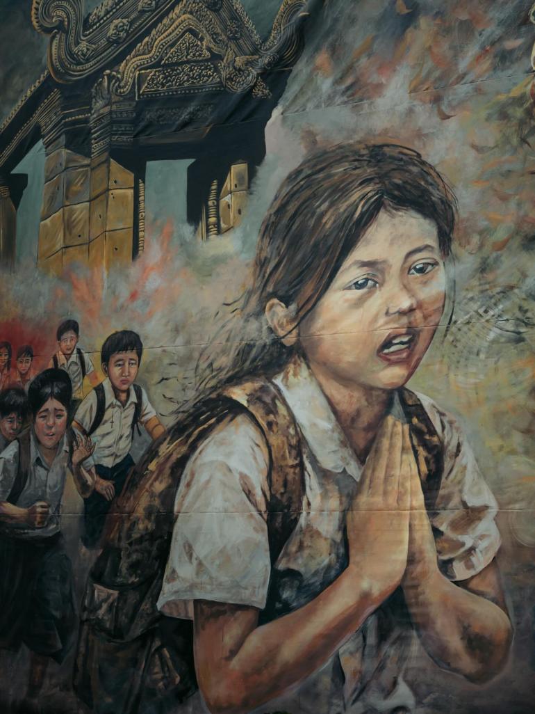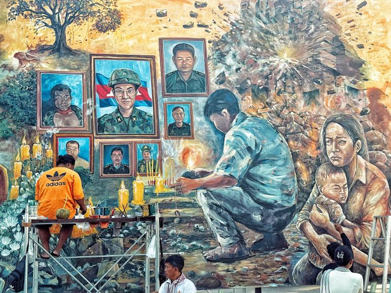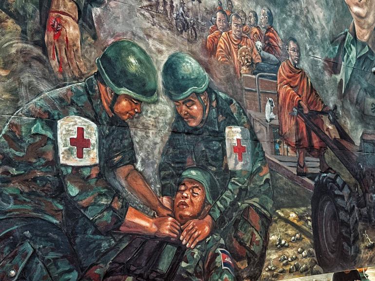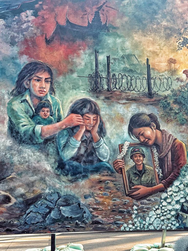 ក្នុងទឹកដីវប្បធម៌របស់កម្ពុជា និងជាផ្ទះនៃបេតិកភណ្ឌពិភពលោកមួយ នោះគឺប្រាសាទអង្គវត្ត ដែលជាកន្លែងទេសចរណ៍ចេញចូលមិនដាច់ បែរជាមានគំនូរមួយផ្ទាំង អាចធ្វើអោយគ្រប់គ្នាស្រក់ទឹកភ្នែក និងយល់ពីការពិត ការឈឺចាប់នៃសង្គ្រាម ក្នុងគោលបំណងផ្តល់សំឡេងដល់ជនស៊ីវិល ការគោរពបេតិកភណ្ឌ និងអំពាវនាវដល់សហគមន៍អន្តរជាតិឱ្យចាត់វិធានការចំពោះការឈ្លានពានរបស់ថៃ។