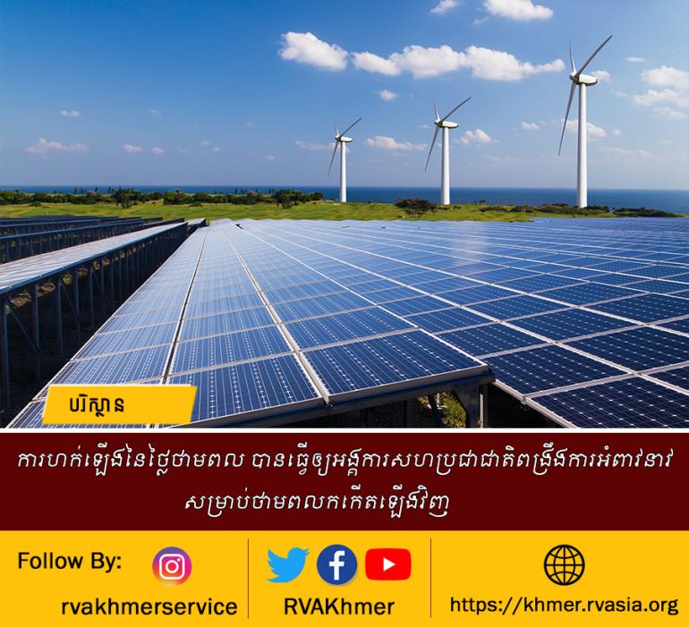ការហក់ឡើងនៃថ្លៃថាមពល បានធ្វើឲ្យអង្គការសហប្រជាជាតិពង្រឹងការអំពាវនាវ សម្រាប់ថាមពលកកើតឡើងវិញ
