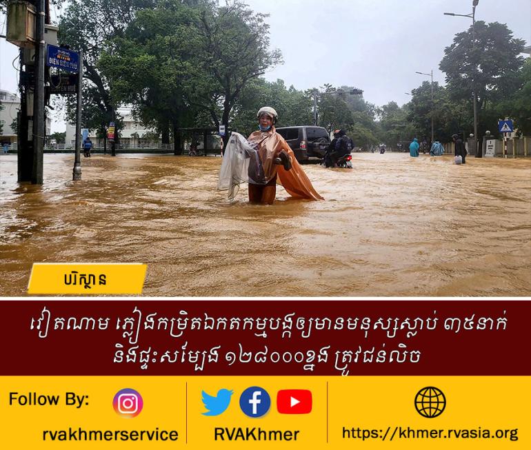 វៀតណាម ភ្លៀងកម្រិតឯកតកម្មបង្កឲ្យមានមនុស្សស្លាប់ ៣៥នាក់ និងផ្ទះសម្បែង ១២៨០០០ខ្នង ត្រូវជន់លិច