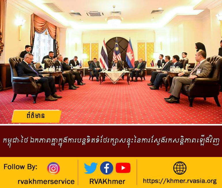 កម្ពុជា-ថៃ ឯកភាពគ្នាក្នុងការបន្តខិតខំថែរក្សាសន្ទុះនៃការស្វែងរកសន្តិភាពឡើងវិញ