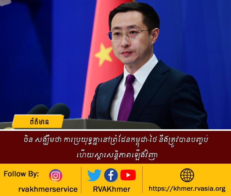 ចិន សង្ឃឹមថា ការប្រយុទ្ធគ្នានៅព្រំដែនកម្ពុជា-ថៃ នឹងត្រូវបានបញ្ចប់ ហើយស្ដារសន្តិភាពឡើងវិញ