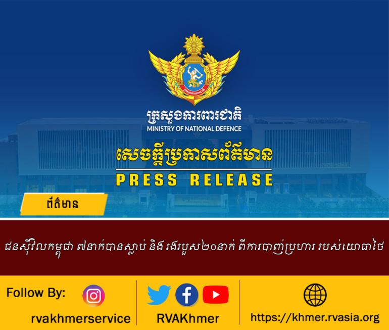 ជនស៊ីវិលកម្ពុជា ៧នាក់បានស្លាប់ និង រងរបួស២០នាក់ ពីការបាញ់ប្រហារ របស់យោធាថៃ