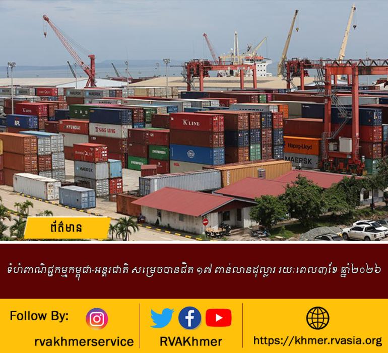 ទំហំពាណិជ្ជកម្មកម្ពុជា-អន្តរជាតិ សម្រេចបានជិត ១៧ ពាន់លានដុល្លារ រយៈពេល៣ខែ ឆ្នាំ២០២៦