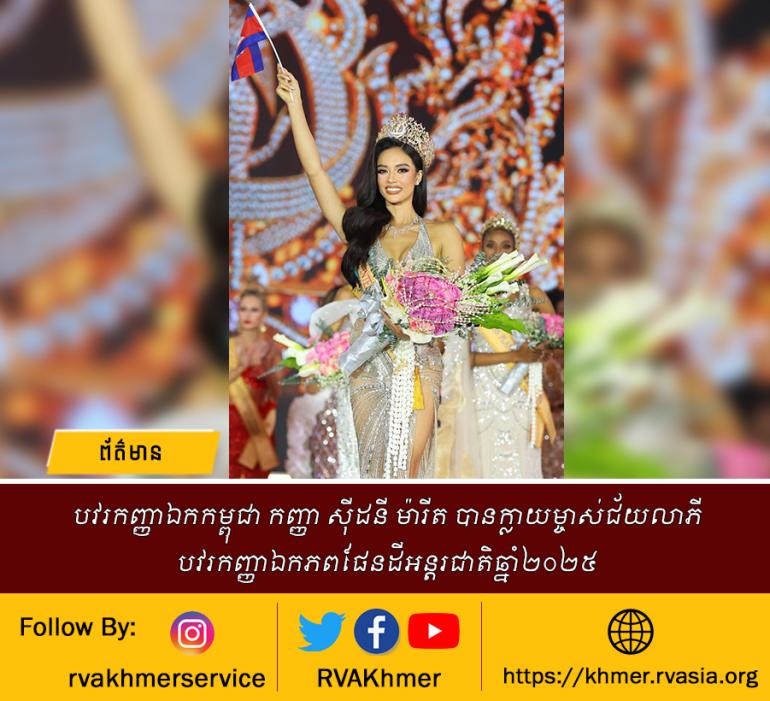 បវរកញ្ញាឯកកម្ពុជា កញ្ញា ស៊ីដនី ម៉ារីត បានក្លាយម្ចាស់ជ័យលាភីបវរកញ្ញាឯកភពផែនដីអន្តរជាតិឆ្នាំ២០២៥