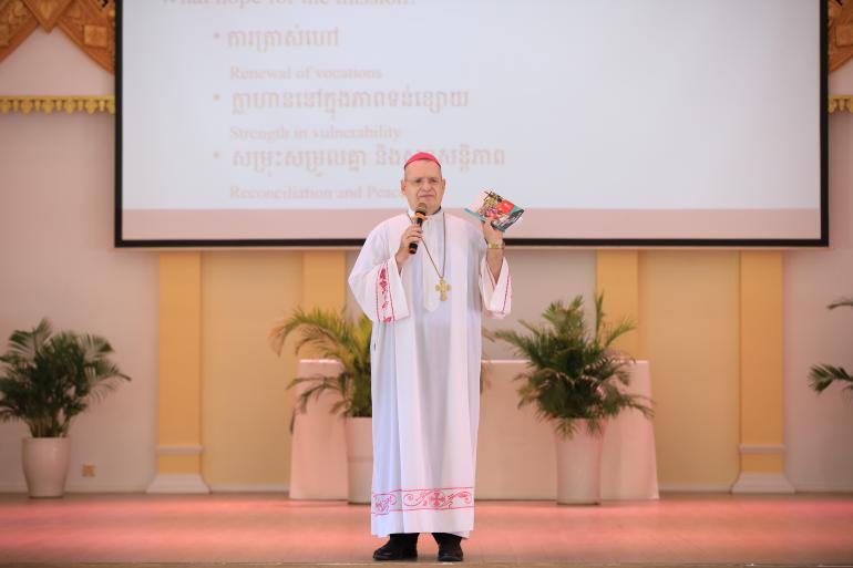 ក្នុងធម្មទេសនា លោកអភិបាល អូលីវីយ៉េ បានរំឭកទៅកាន់ បព្វជិត បព្វជិតា ទាំងអស់ អំពីបទពិសោធណ៍ពីសេចក្តីសង្ឃឹម និងកម្លាំងដែលមកពីព្រះយេស៊ូ ។
