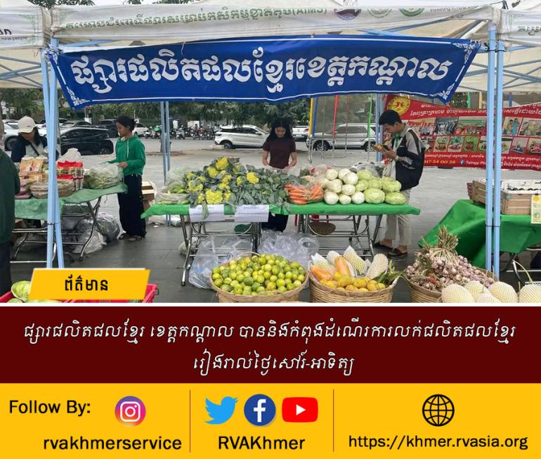 ផ្សារផលិតផលខ្មែរ ខេត្តកណ្តាល បាននិងកំពុងដំណើរការលក់ផលិតផលខ្មែររៀងរាល់ថ្ងៃសៅរ៍-អាទិត្យ