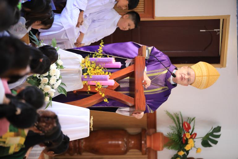ពិធីដ៏សំខាន់នេះរួមមាន៖ -បុណ្យរំលឹកសន្តហ្វ្រង់ស្វ័រ សាវីយ៉េ ដែលជាឧបការីនៃព្រះសហគមន៍នៅចំប៉ា។ -បុណ្យគោរពព្រះនាងម៉ារី គ្មានជំពាក់បាប។ -អភិសេកតុសក្ការៈថ្មី និងអាងជ្រមុជទឹក។ -អគ្គសញ្ញាលាបថ្ងាស សម្រាប់បេក្ខជន បេក្ខនារីចំនួន ៣០ នាក់។ ក្នុងធម្មទេសនា លោកអភិបាលអូលីវីយ៉េ បានដាស់តឿនគ្រីស្តបរិស័ទទាំងអស់ឱ្យត្រៀមខ្លួនទទួលព្រះយេស៊ូ ដែលនឹងយាងមក៖ ១. ការត្រៀមរៀបចំខ្លួន និងសេចក្តីសង្ឃឹម៖ លោកបានរំឭកថា លោកយ៉ូហានបាទីស្ត បានអញ្ជើញយើងឱ្យរៀបចំជីវិតផ្ទាល់ខ្លួន ដើម្បីទទួលព្រះអង្គយាងមក។ ព្រះបន្ទូលរបស់ព្រះបានណែនាំយើងតាមរបៀបពិសេស ហើយសេចក្តីសង្ឃឹមដែលយើងទទួលបាន គឺជាសេចក្តីសង្ឃឹមសម្រាប់យើងទាំងអស់គ្នា។ សេចក្តីសង្ឃឹមនេះ គឺសម្រាប់អ្នកដែលបាត់បង់អ្វីៗទាំងអស់ ជនគ្មានទីពឹង អ្នកក្រីក្រ ក៏ដូចជាសម្រាប់យើងផ្ទាល់ផងដែរ។ ព្រះអម្ចាស់ជាអ្នកសង្គ្រោះជីវិត គឺជាសេចក្តីសង្ឃឹមរបស់យើង។ ទោះបីយើងខ្វះខាតវត្ថុលោកិយ៍ ក៏យើងមានព្រះជាម្ចាស់គង់នៅជាមួយដែរ។ ព្រះបន្ទូលរបស់ព្រះអង្គ បានលួងលោមចិត្តយើង និងផ្តល់កម្លាំងចិត្តឱ្យយើងចេះស៊ូទ្រាំ។ ២. កម្លាំងចិត្តពីព្រះវិញ្ញាណដ៏វិសុទ្ធ ដើម្បីមានកម្លាំងបន្តទៅមុខទៀត លោកអភិបាលបានអំពាវនាវដល់បងប្អូន ៣០ រូបដែលទទួលអគ្គសញ្ញាលាបថ្ងាស និងគ្រីស្តបរិស័ទទាំងអស់ ឱ្យរំឭកដល់អំណោយទានទាំង៧ របស់ព្រះវិញ្ញាណដ៏វិសុទ្ធ។ ព្រះវិញ្ញាណបរិសុទ្ធ នឹងណែនាំយើង ជាពិសេសឱ្យស្គាល់ និងគោរពព្រះជាម្ចាស់។ ៣. ភាពពិសិដ្ឋនៃតុសក្ការៈថ្មី៖ លោកអភិបាលបានប្រទានព្រះពរលើតុសក្ការៈថ្មីនេះ សម្រាប់ថ្វាយអភិបូជា គឺនំប៉័ងទៅជាព្រះកាយ និងស្រាទៅជាព្រះលោហិតរបស់ព្រះយេស៊ូ។ ធាតុរបស់សន្តីមៀរីយ៉ាម ប៉ាវ វ៉ាឌី (នៃព្រះយេស៊ូលើឈើឆ្កាង) ត្រូវបានតម្កល់ក្នុងតុសក្ការៈនោះ។ សន្តីរូបនេះបានជួបព្រះជាម្ចាស់ក្នុងការត្រាស់ហៅរបស់គាត់មុនពេលស្លាប់នៅអាយុ ៣៣ ឆ្នាំ។ ធាតុនេះមកពីទឹកដីកំណើតរបស់ព្រះយេស៊ូ។ លោកអភិបាលបានដកស្រង់សម្តីរបស់គាត់ថា៖ «កន្លែងណាមានចិត្តធម៌ មេត្តាករុណា និងសេចក្តីស្រឡាញ់យ៉ាងពិតប្រាកដ កន្លែងនោះព្រះជាម្ចាស់គង់នៅ»។ លោកអភិបាលអូលីវីយ៉េ បន្តថា សេចក្តីស្រឡាញ់ដែលមកពីព្រះជាម្ចាស់ គឺជាអំណោយទានពិសេសដែលនាំឱ្យយើងមានភាពឆ្អែត មានអំណរ និងមានកម្លាំង ដោយសារតែយើងមានព្រះជាម្ចាស់គង់នៅជាមួយ។ លោកក៏បានរំឭកថាតាមរយៈសន្តហ្វ្រង់ស្វ័រ សាវីយ៉េ ដែលខិតខំប្រកាសដំណឹងល្អ នាំឱ្យយើងមានសេចក្តីក្លាហាន ជាអំណោយទានពីព្រះវិញ្ញាណបរិសុទ្ធ។ តាមរយៈព្រះនាងម៉ារីដែលគ្មានជំពាក់បាប ជាអ្នកបម្រើ និងធ្វើតាមព្រះហឫទ័យព្រះជាម្ចាស់ ដែលជាកម្លាំងឱ្យយើងត្រៀមខ្លួនទទួលព្រះជាម្ចាស់។ ជាចុងក្រោយ លោ
