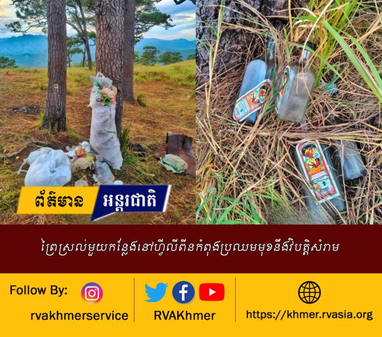 សកម្មជនរូបនេះបាននិយាយថា ទីនោះត្រូវបានបំពុលដោយ សំរាមរួមមានពែងប្លាស្ទិក ដប កំប៉ុងស្រា និងសូម្បីតែអាហារដែលនៅសល់ដូចជាអង្ករដែលត្រូវបានបោះបង់ចោលនៅ ផ្លូវដើរពាសវាលពាសកាល។
