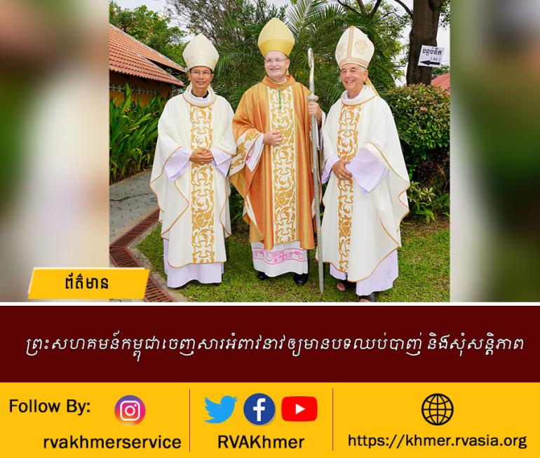 នៅរសៀលថ្ងៃទី១២ ខែធ្នូនេះ ក្នុងថ្ងៃបុណ្យគោរពព្រះនាងព្រហ្មចារិនីម៉ារី នៅហ្គ័រដាឡូពេ លោកអភិបាលព្រះសហគមន៍កាតូលិកនៅកម្ពុជាទាំងបីភូមិភាគរួមមាន លោកអភិបាលអូលីវីយ៉េ ជ្មីតហស្លេនៃភូមិភាគភ្នំពេញ លោកសិលា សួន ហង្សលីនៃភូមិភាគកំពង់ចាមនិងជាអភិបាលឧបត្ថម្ភកៈនៃភូមិភាគភ្នំពេញ និងលោកអេនរីគេ ហ្វីការេដូនៃភូមិភាគបាត់ដំបង បានចេញសេចក្តីអំពាវនាវឲ្យមានបទឈប់បាញ់ និងសុំសន្តិភាព។