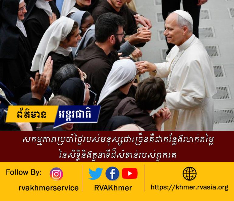 មានបន្ទូលអបអរនិងសម្តែងអំណរសប្បាយនៅក្នុងព្រឹត្តិការណ៍ Jubilee of Consecrated Life សម្តេចប៉ាប ឡេអូទី១៤ បានសរសើរនិងកត់ត្រានូវសមិទ្ធផលនិងទិន្នផលការងារនៃអស់អ្នកដែលបានប្រែក្លាយឬបូជាខ្លួនជាជីវិតដ៏បរិសុទ្ធនិងដាក់ខ្លួនបម្រើព្រះជាម្ចាស់ និង សង្គម ដើម្បីទ្រទ្រង់កិច្ចការរបស់ព្រះសហគមន៍នៅទូទាំងពិភពលោក។