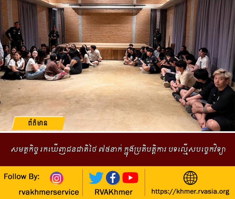 សមត្ថកិច្ច រកឃើញជនជាតិថៃ ៧៥នាក់ ក្នុងប្រតិបត្តិការ បទល្មើសបច្ចេកវិទ្យា