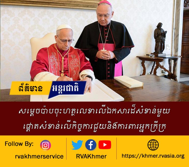 សម្តេចប៉ាបចុះហត្ថលេខាលើឯកសារដ៏សំខាន់មួយផ្តោតសំខាន់លើកិច្ចការជួយនិងការពារអ្នកក្រីក្រ
