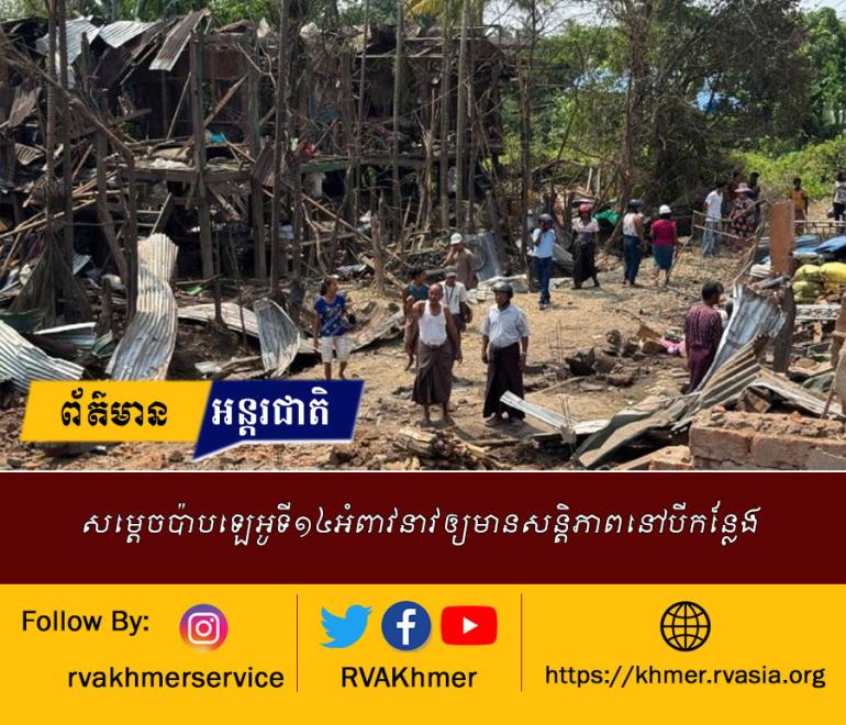 សម្តេចប៉ាប ឡេអូទី១៤បាន អំពាវនាវឲ្យមានបទឈប់បាញ់នៅមីយ៉ាន់ម៉ា និងសន្តិភាពក្នុងទឹកដីដែលហែកហួរដោយសង្រ្គាមដូចជានៅអ៊ុយក្រែន និងហ្គាហ្សា។