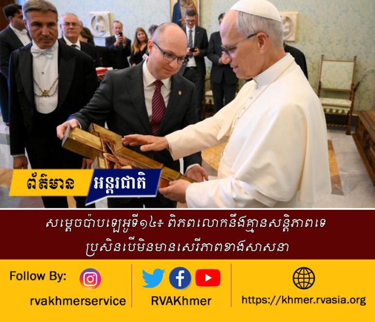 សម្តេចប៉ាប ឡេអូទី១៤ បានមានបន្ទូល កត់សម្គាល់ថា នៅពេលសេរីភាពខាងសាសនាត្រូវបានគេបដិសេធ មនុស្សនឹងឃើញនូវការបែកបាក់នៃចំណងសីលធម៌ និងស្មារតីក្នុងសហគមន៍។ នេះជាសេចក្តីរាយការណ៍របស់វ៉ាទីកង់ញូវ ដែលទ្រង់យាងទទួលជួបសាវនកាជាមួយសមាជិកនៃអង្គការ Aid to Church in Need ជាមូលនិធិមនុស្សធម៌របស់ព្រះសហគមន៍មួយកាលពីចុងសប្តាហ៍មុន។