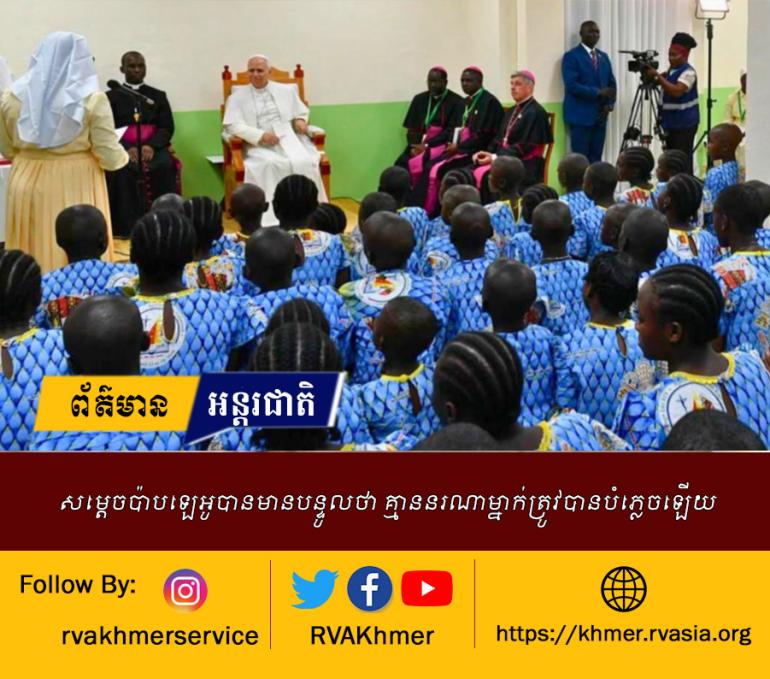 សម្តេចប៉ាបឡេអូ ទី១៤ នៅពេលដែលយាង ទៅទស្សនាមណ្ឌលកុមារកំព្រាមួយនៅប្រទេសកាមេរូនកាលពីសប្តាហ៍មុន បានលើកទឹកចិត្តកុមារ និងអ្នកថែទាំពួកគេជាមួយសារនៃក្តីសង្ឃឹម និងការរស់នៅជិតស្និទ្ធ។