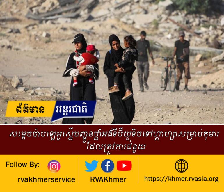 សម្តេចប៉ាបឡេអូស្នើបញ្ជូនថ្នាំអង់ទីប៊ីយូទិចទៅហ្គាហ្សាសម្រាប់កុមារដែលត្រូវការជំនួយ