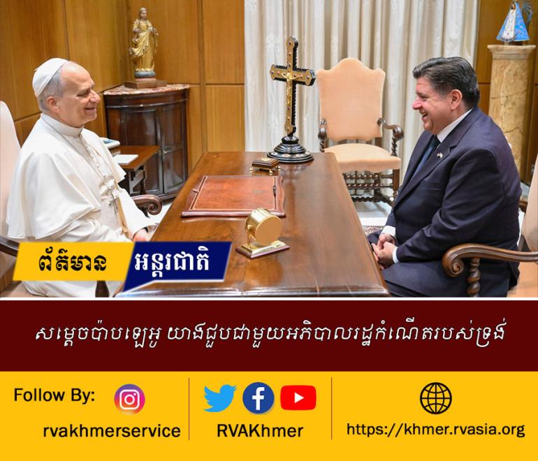 សម្តេចប៉ាបឡេអូទី១៤ បានយាងទទួលជួបជាមួយអភិបាលរដ្ឋ អ៊ីលីណ័រ (Illinois) ដែលជាស្រុកកំណើតរបស់ទ្រង់ គឺលោក ជេប៊ី ព្រីស្គ័រ ( JB Pritzker ) កាលពីថ្ងៃពុធ នៅឯបុរីវ៉ាទីកង់ រួមជាមួយនឹងភរិយា គឺលោកស្រី អ៊ឹមខេ ព្រីស្គ័រ (MK Pritzker)។