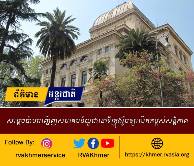 សម្តេចប៉ាបអញ្ជើញសហគមន៍យូដានៅទីក្រុងរ៉ូមឲ្យលើកកម្ពស់សន្តិភាព