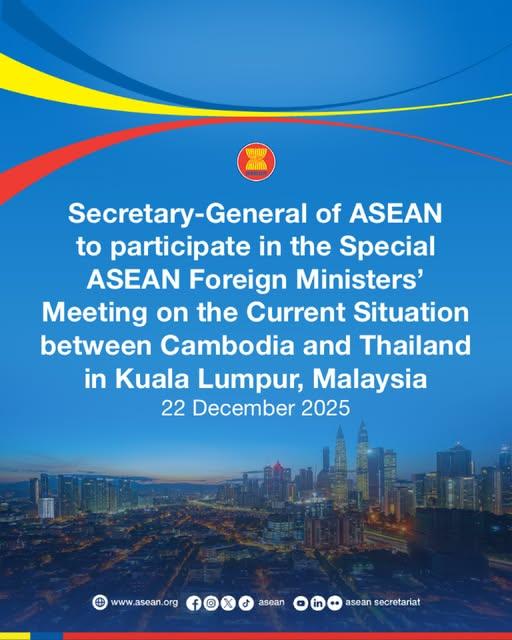 ក្រសួងបានចេញសេចក្តីថ្លែងការណ៍នេះ មុនកិច្ចប្រជុំរដ្ឋមន្ត្រីការបរទេសអាស៊ាន ដែលរៀបចំឡើងនៅទីក្រុងគូឡាឡាំពួ ប្រទេសម៉ាឡេស៊ី នាថ្ងៃចន្ទទី២២ខែធ្នូឆ្នាំ២០២៥នេះ។