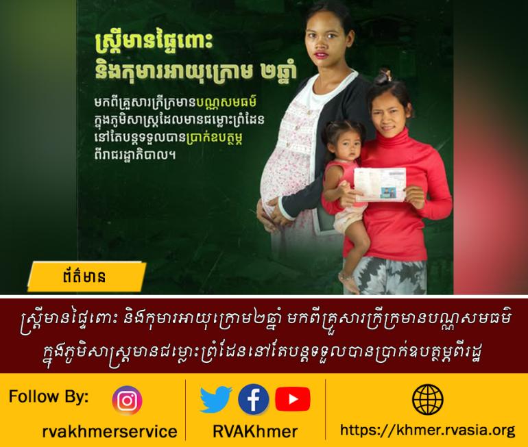 ស្រ្តីមានផ្ទៃពោះ និងកុមារអាយុក្រោម២ឆ្នាំ មកពីគ្រួសារក្រីក្រមានបណ្ណសមធម៌ក្នុងភូមិសាស្រ្តមានជម្លោះព្រំដែននៅតែបន្តទទួលបានប្រាក់ឧបត្ថម្ភពីរដ្ឋ
