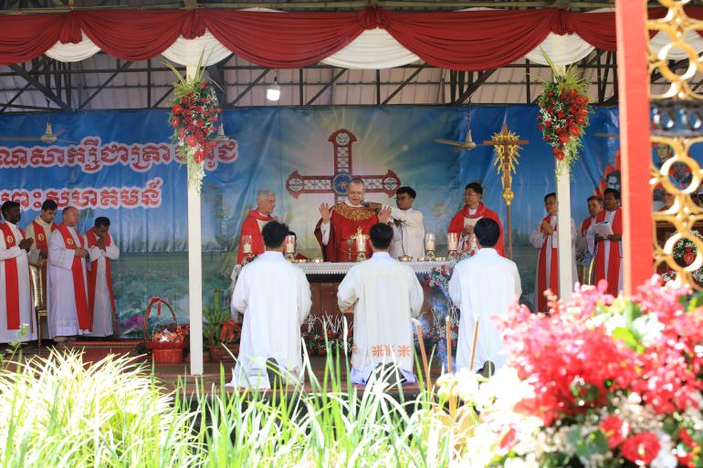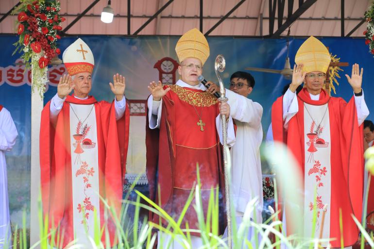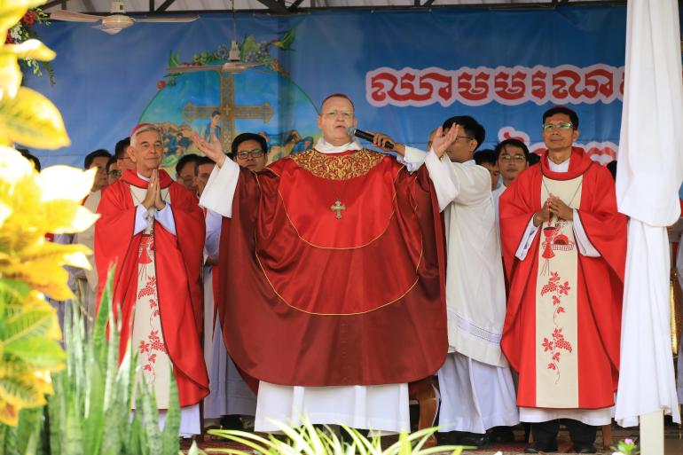 លោកគង្វាលរូបនេះ បានបន្ថែមដោយដកស្រង់បន្ទូលរបស់សម្តេចប៉ាបហ្វ្រង់ស៊ីស្កូ ដោយអញ្ជើញឲ្យគ្រីស្តបរិស័ទ ស្រឡាញ់អ្នកតូចតាច អ្នកអស់សង្ឃឹម និងបង្កើតពិភពលោកមួយដែលមានភាតរភាព។ លោកបានប្រៀបធៀបស្ថានភាពគ្រីស្តបរិស័ទកម្ពុជាសម័យខ្មែរក្រហម ដែលបានលួចថ្វាយអភិបូជាដោយស្ងាត់ៗ និងលួចអានគម្ពីរ ទៅនឹងស្ថានភាពគ្រីស្តបរិស័ទដើមដំបូងនៅទីក្រុងរ៉ូម និងនៅប្រទេសជប៉ុន ដែលបានរក្សាជំនឿទោះបីមានការហាមឃាត់ និងការគំរាមកំហែងដល់ជីវិតក៏ដោយ។