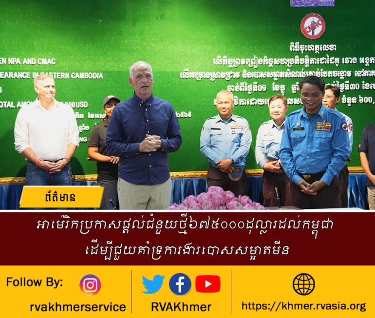 អាម៉េរិកប្រកាសផ្តល់ជំនួយថ្មី៦៧៥០០០ដុល្លារដល់កម្ពុជា ដើម្បីជួយគាំទ្រការងារបោសសម្អាតមីន
