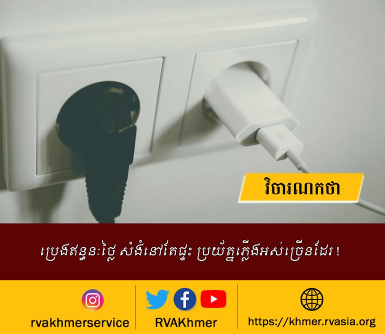 នៅក្នុងកាលៈបែបនេះ អាចមានអ្នកខ្លះមិនហ៊ានចេញទៅណាទេ គឺនៅតែនៅក្នុងផ្ទះ ប៉ុន្តែការនៅក្នុងផ្ទះនោះ គឺវាមានបើកនេះបើកនោះ បើកភ្លើងបើកកង្វារ ហើយខ្លះដល់ម៉ាស៊ីនត្រជាក់ថែមទៀត ហើយកុំថាឡើយរបស់អេឡិចត្រូនិចធំៗ សូម្បីតែសាកថ្មទូរស័ព្ទនេះក៏ត្រូវអស់ច្រើនដែរ ពីព្រោះមិនដឹងទៅណាចុចតែទូរស័ព្ទដល់អស់ថ្ម នាំគ្នាសាក។