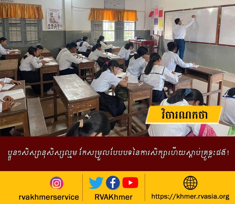 ប្អូនៗសិស្សានុសិស្សល្មម កែសម្រួលបែបបទនៃការសិក្សាហើយស្តាប់គ្រូខ្លះផង !
