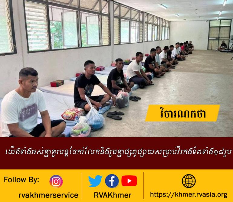 មកដល់ពេលនេះ រាជរដ្ឋាភិបាលកម្ពុជា បាននឹងកំពុងធ្វើការយ៉ាងសស្រាក់សស្រាំឥតឈប់ឈរ នូវគ្រប់យន្តការដោះស្រាយទាំងអស់លើករណីនេះ ដើម្បីឱ្យភាគីថៃ ដោះលែងបងប្អូនទាំង១៨នាក់បាន វិលត្រលប់មកវិញឱ្យបានឆាប់រហ័សជាទីបំផុត និងដោយសុខសុវត្ថិភាព ដូច្នេះយើងទាំងអស់គ្នាជាប្រជាពលរដ្ឋគួរតែចែករំលែក និងគួរតែបង្កើនការផ្សព្វផ្សាយ ដើម្បីធ្វើយ៉ាងណាឲ្យបងប្អូនអាចវិលមកមាតុប្រទេសវិញ។