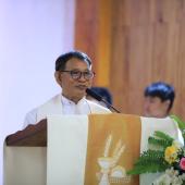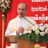 ពីមុនមានទស្សនៈវិជ្ជាកុម្មុយនិស្ត ឬក៏ម៉ាកឡេនីន ដែលធ្វើឲ្យប្រទេសខ្មែរពិបាកមែនទែន បច្ចុប្បន្ននេះមានសេរីភាព។ ប៉ុន្តែ! មានឧបសគ្គថ្មីដូចជាសម្ភារៈនិយមដែលធ្វើឲ្យយើងស្រឡាញ់ទ្រព្យសម្បត្តិកាន់តែច្រើន ហើយបំភ្លេចព្រះអង្គបន្តិចម្ដងៗ ដូច្នេះខ្ញុំសូមសួរបងប្អូនតើប្រទេសខ្មែរនឹងរក្សាជំនឿឬអត់? ខ្ញុំជឿថាក្តីសង្ឈឹមខ្ញុំ ហើយនិងបងប្អូនទាំងអស់គ្នាក៏មិនសូវខុសគ្នាដែរ សេចក្ដីសង្ឃឹមរបស់យើងគឺចង់ឲ្យប្រទេសខ្មែររក្សាបាននូវជំនឿ ជំនឿនៅប្រទេសខ្មែរនឹង រីកចម្រើន។ បងប្អូនកាន់តែច្រើននឹងស្គាល់សេចក្ដីស្រឡាញ់របស់ព្រះជាម្ចាស់! បងប្អូនកាន់តែច្រើននឹងមានបាបធ្ងន់ ឬនឹងទទួលធម៌មេត្តាករុណារបស់ព្រះជាម្ចាស់ ហើយពួកគាត់ក្លាយទៅជាសាក្សីនៃធម៌មេត្តាករុណារបស់ព្រះអង្គដែលជួយសង្គ្រោះយើង។