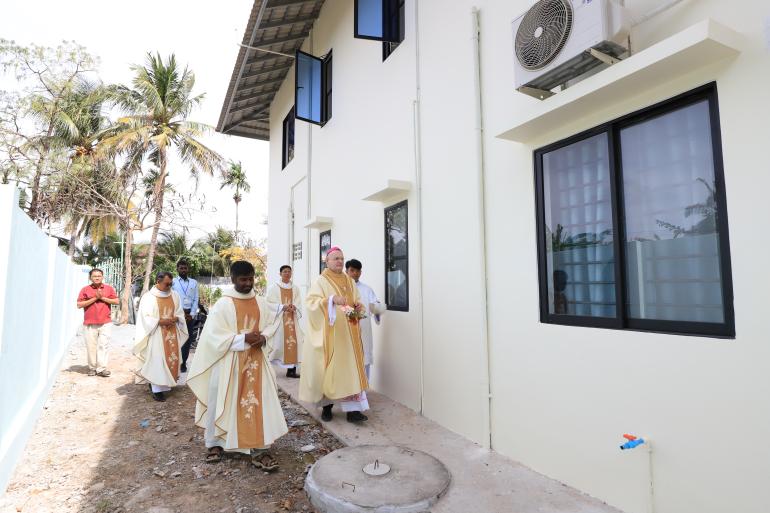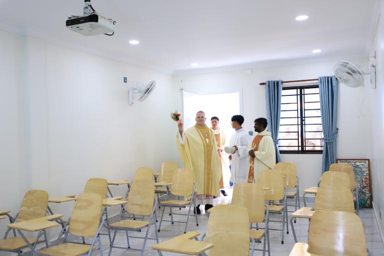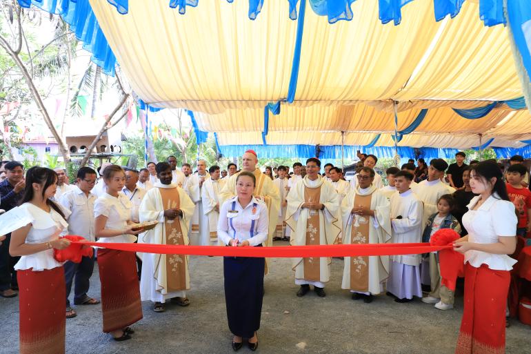 The Traeng Trayeng Parish solemnly inaugurated a new activity building under the presidency of Bishop Olivier Schmitthaeusler, Apostolic Vicar of Phnom Penh, accompanied by Bishop Pierre Suon Hangly, Coadjutor Bishop of the Apostolic Vicariate of Phnom Penh, together with numerous priests.