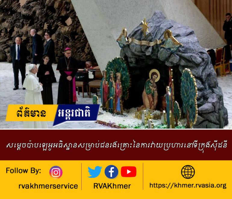 វ៉ាទីកង់ញូវបានរាយការណ៍ថា ការអធិដ្ឋានេះធ្វើឡើង​ក្នុងពេល​ សម្តេចប៉ាប​ថ្លែងទៅកាន់ក្រុមដែលបានបរិច្ចាគដើមឈើណូអែល និងការរៀបចំតុបតែងសម្រាប់បុណ្យ​ព្រះយេស៊ូនៅបុរីវ៉ាទីកង់នៅឆ្នាំនេះ ។