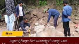 ពត៌មាន អាជ្ញាធរជាតិអប្សរា កំណាយរកឃើញបំណែកក្បាលនាគ ផ្នែកមួយរបស់បដិមាព្រះពុទ្ធប្រក់នាគ នៅក្នុងសាលរបាំនៃប្រាសាទតាព្រហ្ម ក្រុមអ្នកបុរាណវិទ្យានៃអាជ្ញាធរជាតិអប្សរា សហការជាមួយស្ថាប័នស្រាវជ្រាវបុរាណវិទ្យាឥណ្ឌា(ASI) កំពុងធ្វើកំណាយនៅក្នុងបរិវេណប្រាសាទតាព្រហ្ម រកឃើញបំណែកក្បាលនាគ ដែលជាផ្នែកមួយរបស់បដិមាព្រះពុទ្ធបដិមាប្រក់នាគតម្កល់នៅក្នុងសាលរបាំ រួមទាំងបំបែកផ្សេងៗរបស់បដិមាតូចធំមួយចំនួនផង។