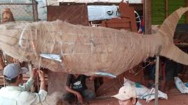 បរិស្ថាន «ត្រីរាជ»ធ្វើពីសំណាញ់មងដែលប្រមូលពីទន្លេ ដាក់តាំងក្នុងភូមិនេសាទខេត្តសៀមរាប «ត្រីរាជ»ធ្វើពីសំណាញ់មងដែលប្រមូលពីទន្លេ ដាក់តាំងក្នុងភូមិនេសាទខេត្តសៀមរាប