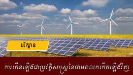 យោងតាមទីភ្នាក់ងារអន្តរជាតិនៃថាមពល (AIE) កាលពីឆ្នាំ២០២៣ ពិភពលោកបានស្ថាបនា ដល់កម្រិតឯកតកម្ម ៥០% នៃថាមពលកកើតឡើងវិញ កើនលើសមុន ប្រៀបធៀបនឹង ឆ្នាំ ២០២២។ នេះបង្កើតបានជាចង្វាក់មិនធ្លាប់មានសម្រាប់ប៉ុន្មានឆ្នាំខាងមុខទៅថ្ងៃអនាគត ទោះ បីជាវាមិនទាន់គ្រប់គ្រាន់នឹងប្រឈមនឹងការកើនកម្តៅអាកាសធាតុក្តី។