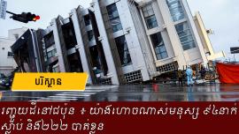 បរិស្ថាន រញ្ជួយដីនៅជប៉ុន ៖ យ៉ាងហោចណាស់មនុស្ស ៩៤នាក់ស្លាប់ និង២២២ បាត់ខ្លួន សេចក្តីសង្ឃឹមស្វែងរកឃើញអ្នករស់រានមានជីវិត បានថយចុះយ៉ាងឆាប់រហ័សបន្ទាប់ពីរយៈពេល ៧២ម៉ោង ដែលត្រូវបានចាត់ទុកជារយៈពេលមានសារៈសំខាន់ដើម្បីសង្រ្គោះជីវិតបន្ទាប់ពីគ្រោះមហន្តរាយធម្មជាតិ។