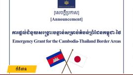 នៅថ្ងៃទី១៥ ខែសីហា ឆ្នាំ២០២៥នេះ រដ្ឋាភិបាលជប៉ុន បានសម្រេច ផ្តល់ជំនួយសង្គ្រោះបន្ទាន់ (ឥតសំណង) ដែលមានទឹកប្រាក់សរុបប្រមាណ ១,៨ លានដុល្លារអាមេរិក ដើម្បីឆ្លើយតបទៅ នឹងតម្រូវការមនុស្សធម៌ជាបន្ទាន់ នៅតាមតំបន់ព្រំដែនកម្ពុជា-ថៃ ខណៈរដ្ឋាភិបាលជប៉ុន គាំទ្រយ៉ាងខ្លាំងចំពោះកិច្ចព្រមព្រៀង ឈប់បាញ់បន្ទាន់ និងឥតលក្ខខណ្ឌរវាងកម្ពុជា និងថៃ ។